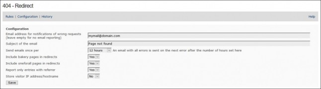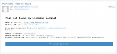 Vanaf versie 1.0 (juli 2017) is het mogelijk om een e-mail te ontvangen van foutieve verzoeken. Een foute url zal dan worden opgeslagen in een log en éénmaal per 6 uur (voor identieke fouten) zal daarvan een e-mail notificatie worden gestuurd.